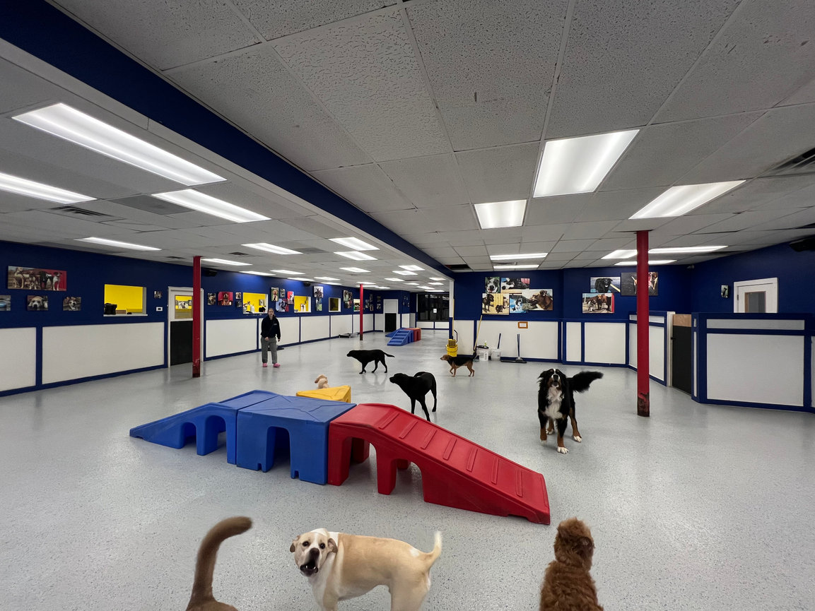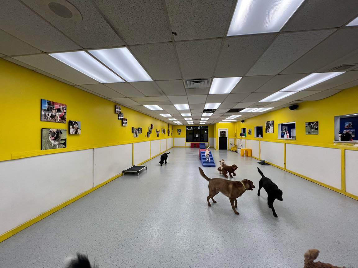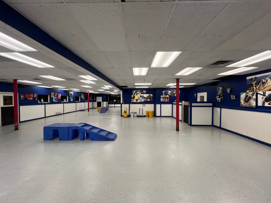 Our floors are easy to keep clean, germ free, and easy on your dogs paws! Inside play areas are segmented into 3 play areas, and we separate according to size and temperament.