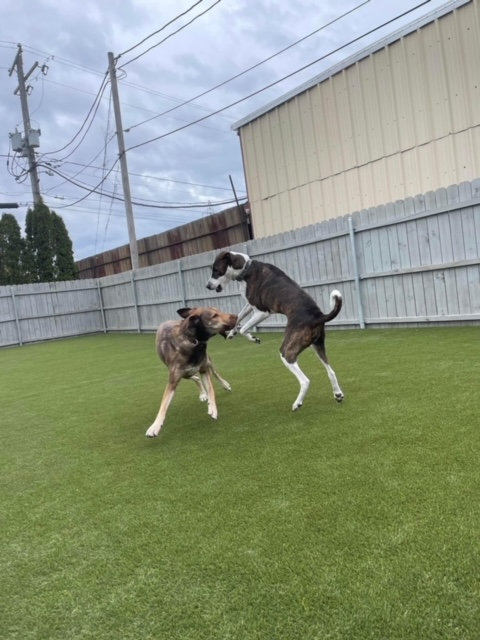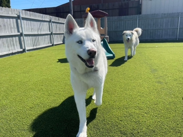 Our facility has over 10,000 square feet indoors, and over 8,000 square feet outdoors dedicated to your loved one! Our top flight staff will watch and play with your loved one while you are away, and your pup will go home happy and tired from a great day of play!